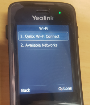 If you are unable to connect the phone to Wi-Fi or do not have access to another device, you can select ‘Available Networks‘ instead of ‘Quick Wi-Fi Connect’. If you select this option, you will have to select the correct SSID and enter the password in using the Yealink AX83H’s keyboard.